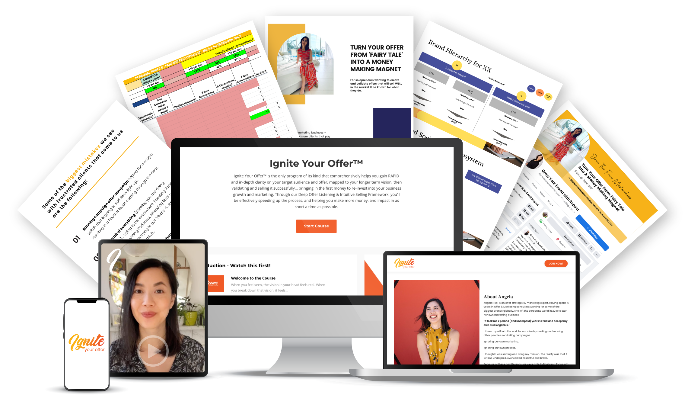 The only program of its kind that comprehensively helps you gain RAPID and in-depth clarity on your target audience and offer, mapped to your longer term vision, then validating and selling it successfully… bringing in the first money to re-invest into your business growth and marketing.